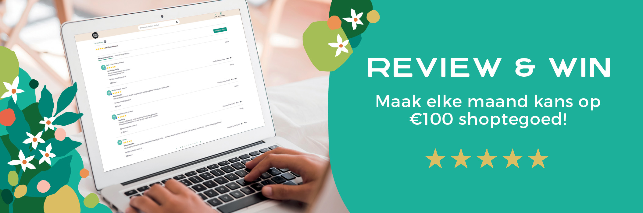 Laat een review achter en maak elke maand kans op €100 shoptegoed.